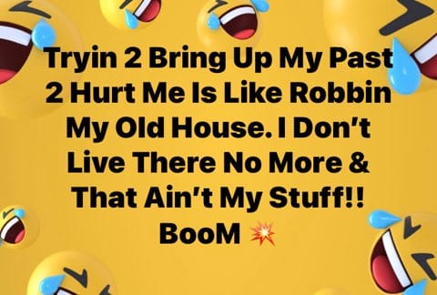 Trying to bring up my past to use it against me is like going to rob one of my old apartments or motel rooms; I don't live there any more, and that is not my stuff! ♥